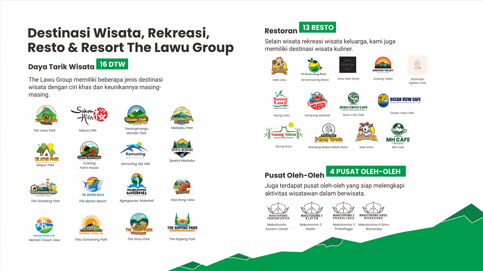 The Lawu Group memiliki banyak destinasi wisata yang dapat dikunjungi sesuai dengan tujuan, preferensi dan selera anda.